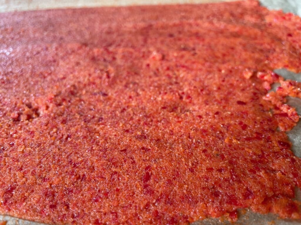 Nach dem Waschen lassen sich die Hage­butten am einfachsten auf einem mit Back­pa­pier ausge­legtem Back­blech trocknen, am besten in einem warmen Raum. Das kann schon mal drei bis vier Wochen dauern. Bitte achtet darauf, dass sie richtig gut durch­ge­trocknet sind!