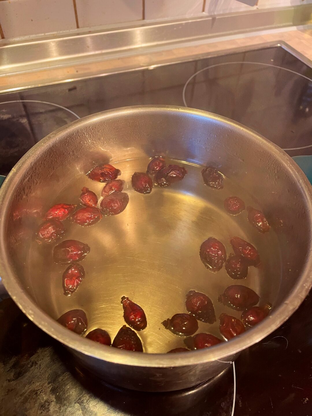 Ich bevor­zuge die einfachste Methode der Verar­bei­tung zu einem vitamin­rei­chen Tee. Hierzu nehme ich einfach die ganzen Früchte, denn ein Aufschneiden und Entfernen der Kerne ist mir zu aufwendig.